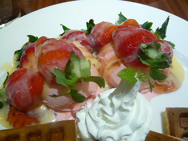 想想我好像沒吃過草莓冰淇淋鬆餅