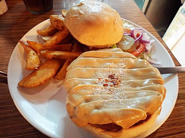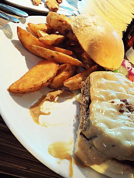 鋪滿花生醬的肉排厚度不輸給底下的漢堡包 扎實的口感很對味