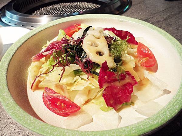 我們這次體驗的是原燒-饗樂套餐,上菜速度頗快,先送上桌的是清爽沙拉