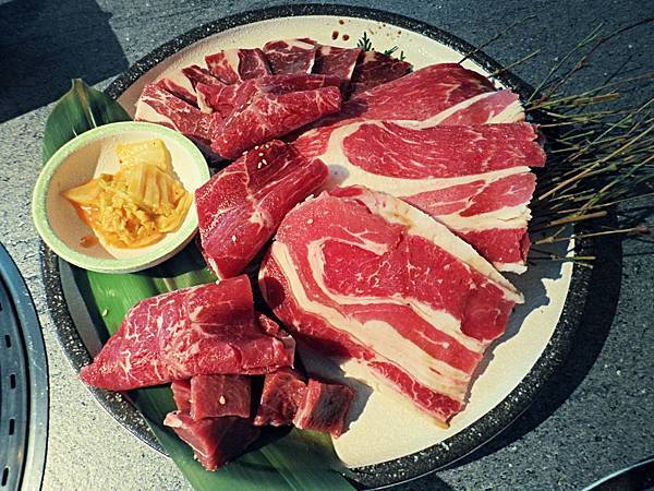 豐厚的拼盤看得我們無不食指大動啊~~店員會先示範如何烤,趕緊動手開吃囉^^