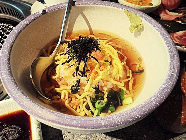 北海道鮭魚茶漬飯- 無論視覺味覺都很豐富的一道料理,鮭魚+蛋絲+海苔絲 鹹甜交織的香