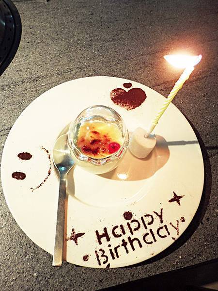 店員這時端出了壽星專屬的烤布蕾甜點,為雙魚壽星慶生啊!!!(當天有好多雙魚寶寶在過生日呢