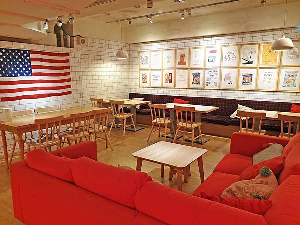 搶眼的美式風格搭配著各式漫畫海報,還有地下一樓的用餐區也很好拍,不過手機收訊不佳><