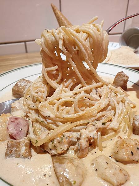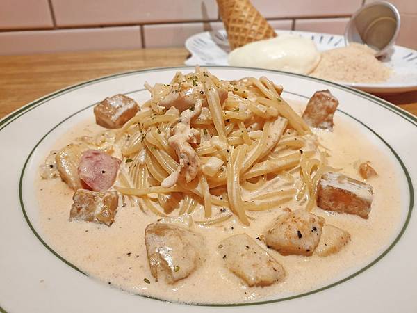 結合我所有最愛的食材,這道義大利麵真的很好吃,不過份量對我這個女生還有點少呢!所以加個甜點很剛好