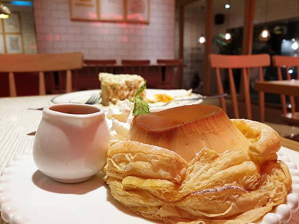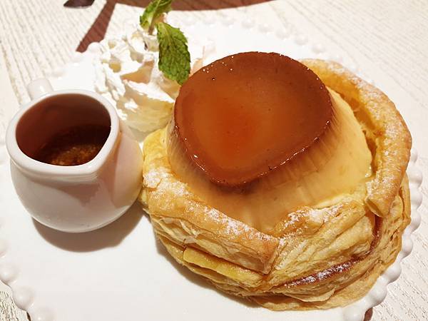 宛如美妙裙襬的酥皮包圍著烤布丁,熱騰騰又Q彈的滋味,推薦必點啊