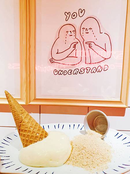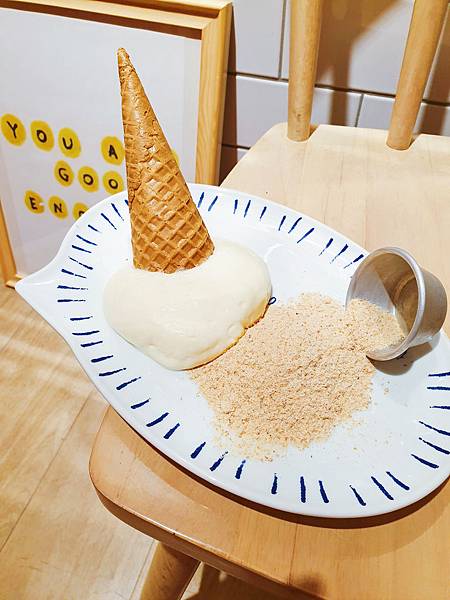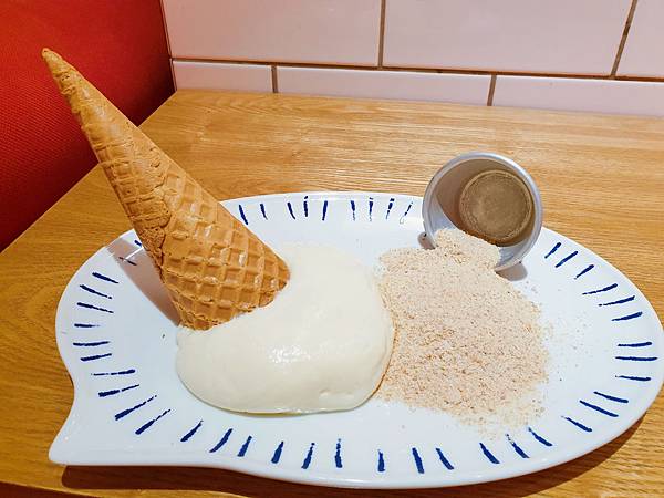這甜點有種中西合併的概念,古早味的花生麻糬搭配甜筒